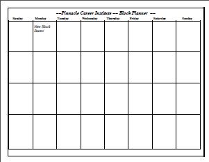 I created a Block Planner so you can print it off and fill in all your due dates for each block. This way you can “see” all of your class assignments in one place. You can include study time reminders or set goals using the planner as well.