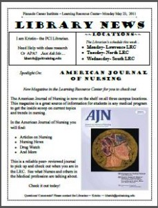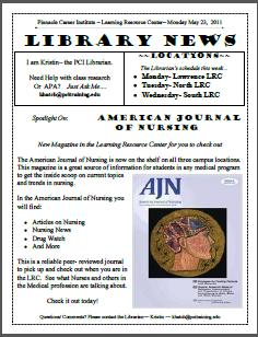 This week, the spotlight is on a new magazine available in all three PCI Learning Resource Centers…. The American Journal of Nursing!